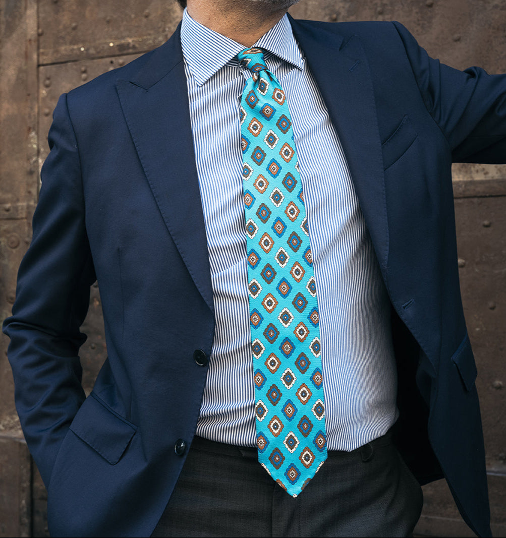 Cravatta F.Marino in seta Twill Medaglione Turchese
