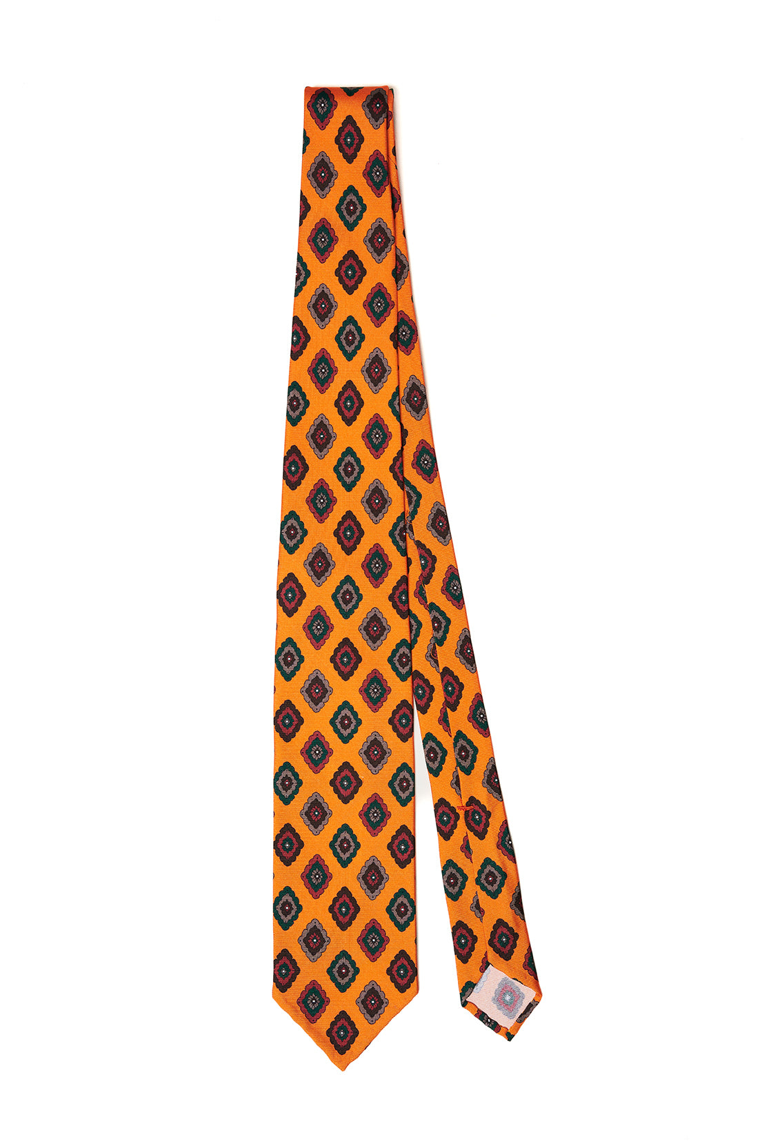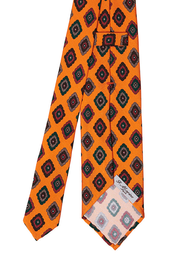 Cravatta F.Marino arancione con rombi verdi, rossi e neri