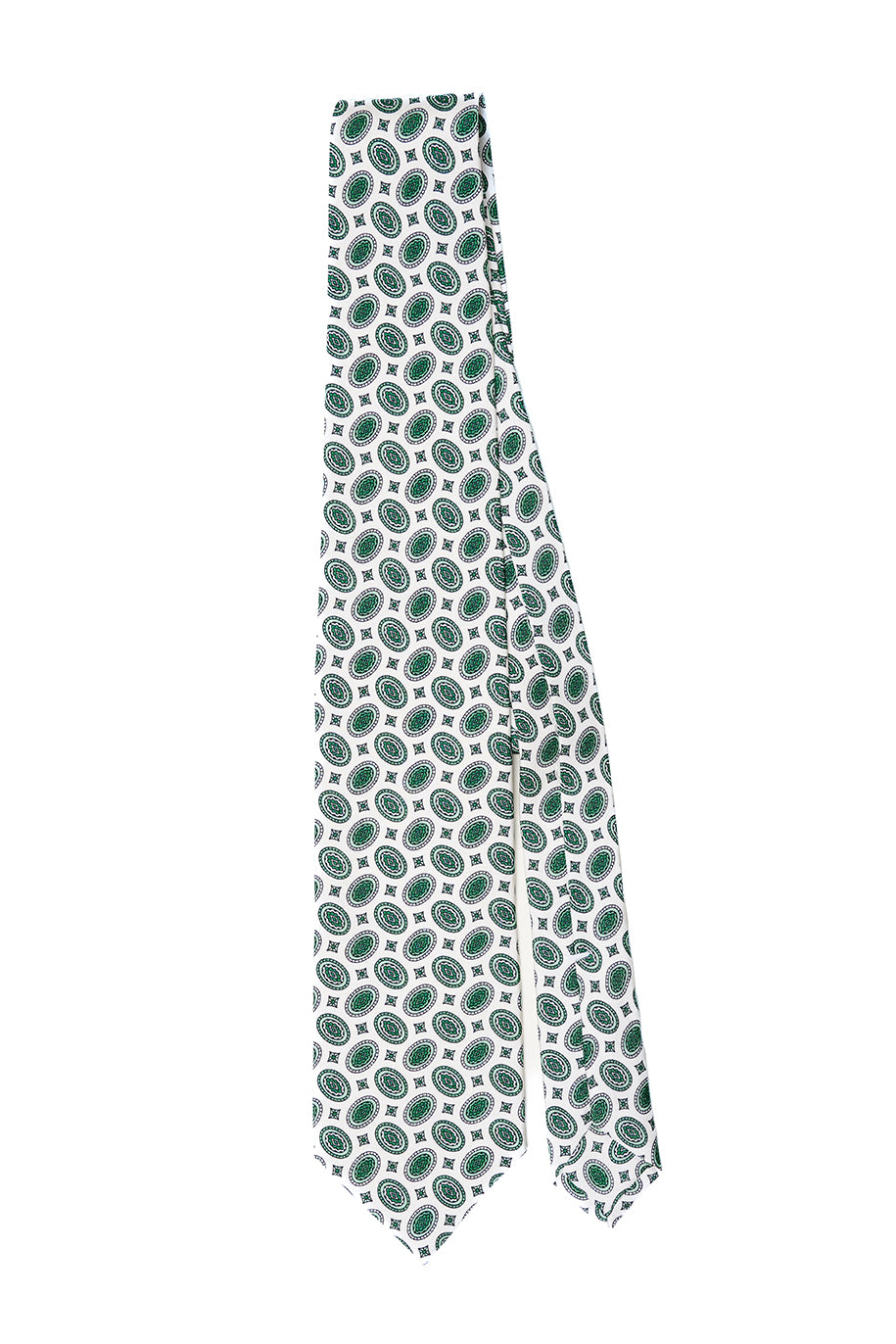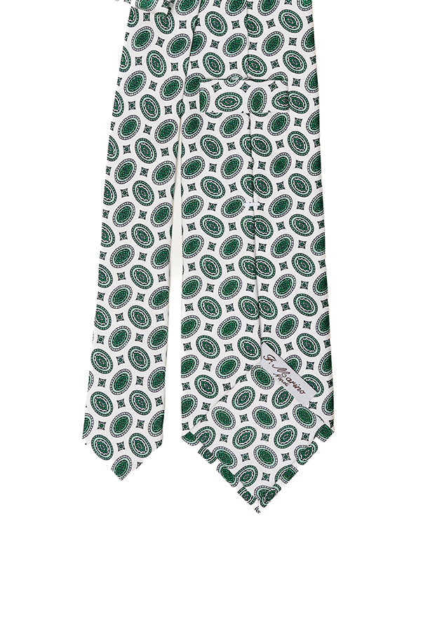 Cravatta F.Marino bianca con fantasia a medaglioni verdi