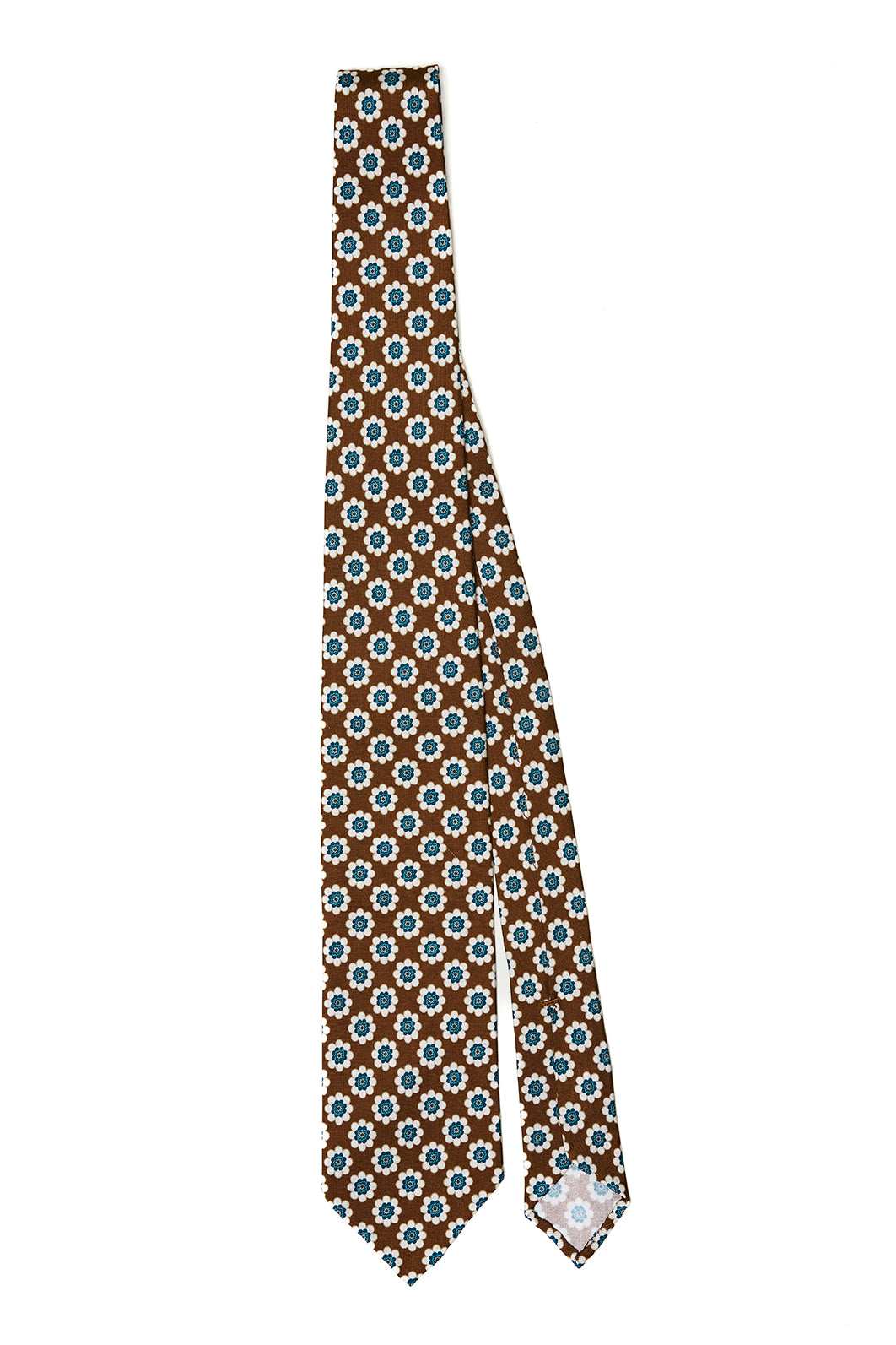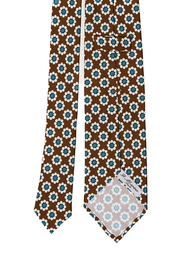 Cravatta F.Marino Marrone con motivo floreale verde e avorio
